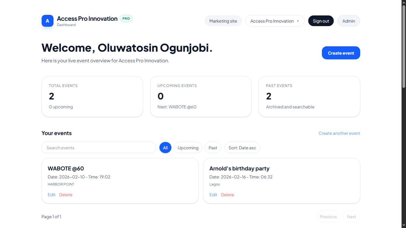 Access Pro gives teams one connected system for invitations, attendance tracking, and day-of-event execution. Build better events with fast setup and smooth on-site operations.